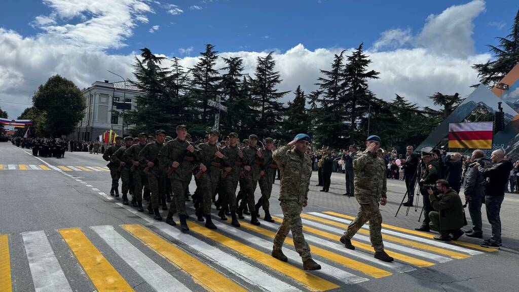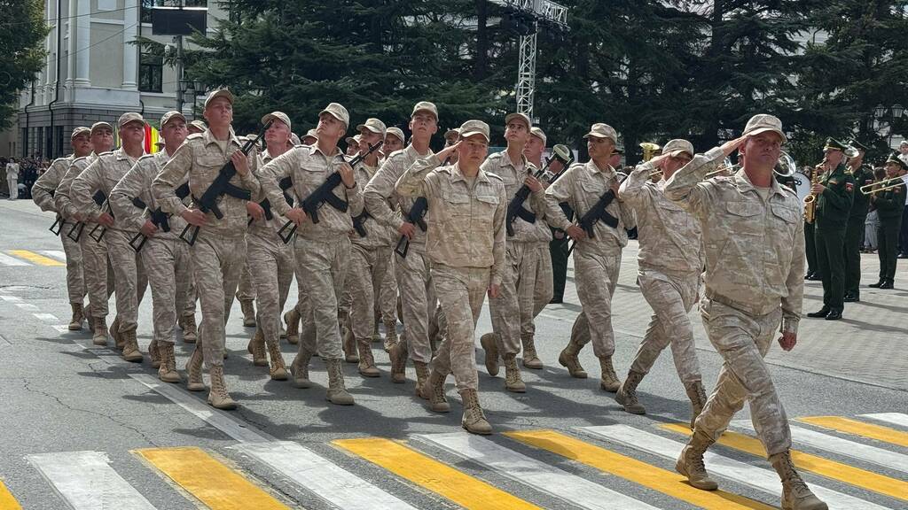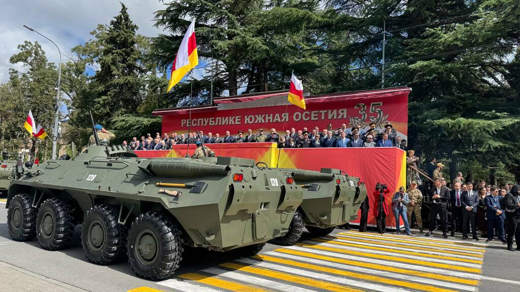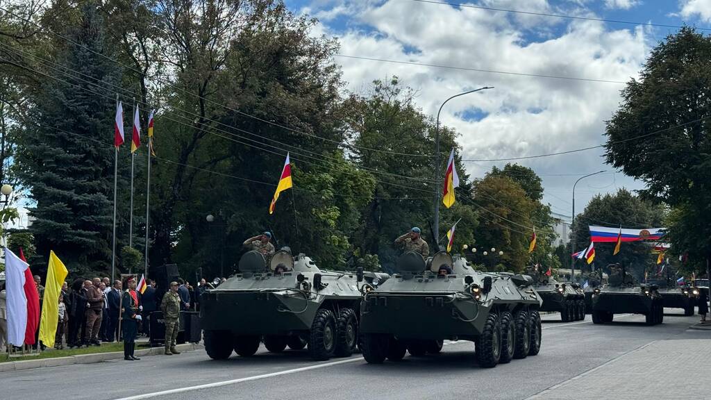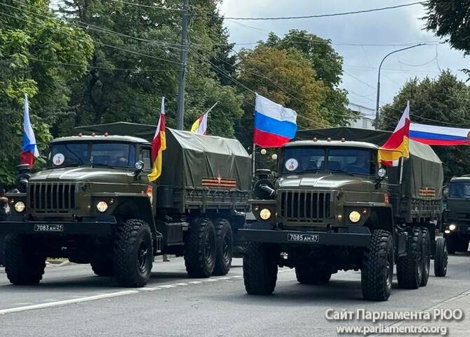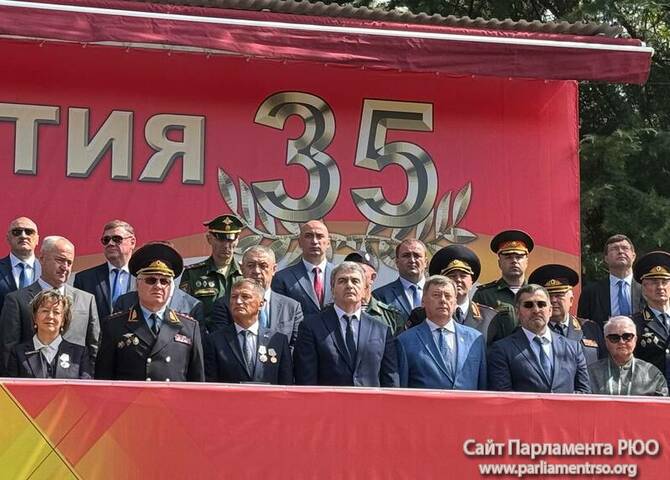 Парламентарии Южной Осетии во главе со спикером Аланом Маргиевым приняли участие в военном параде в честь 35-летия Республики. Фоторепортаж