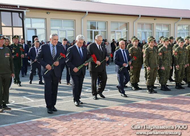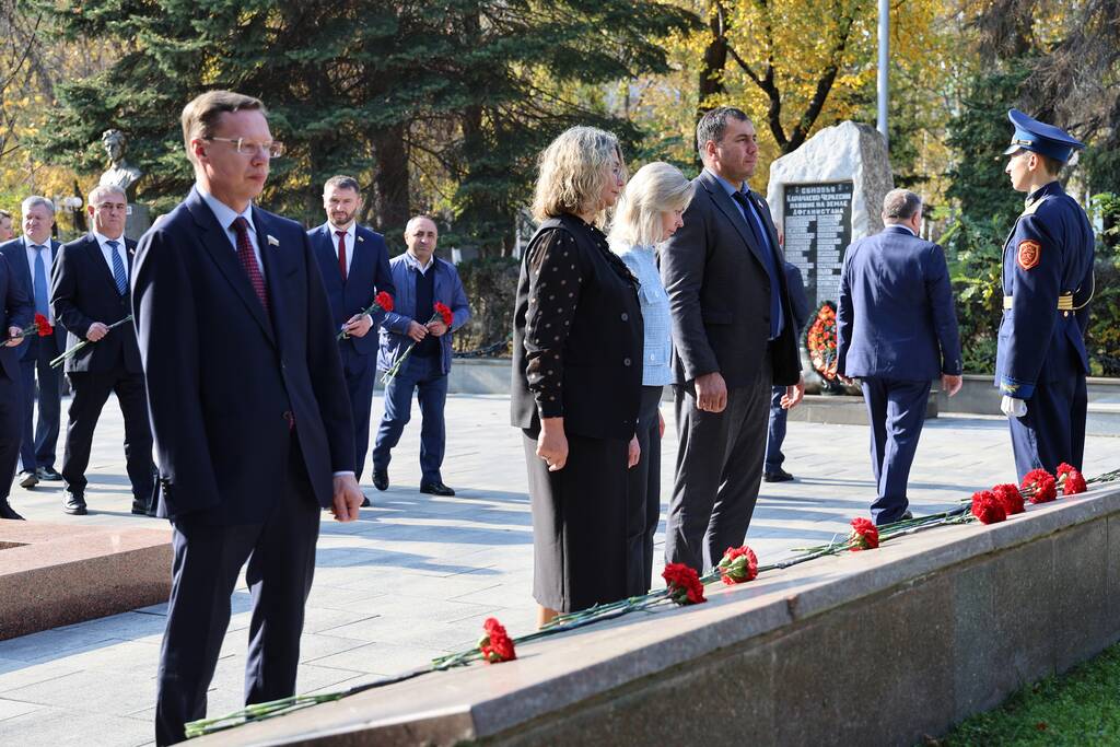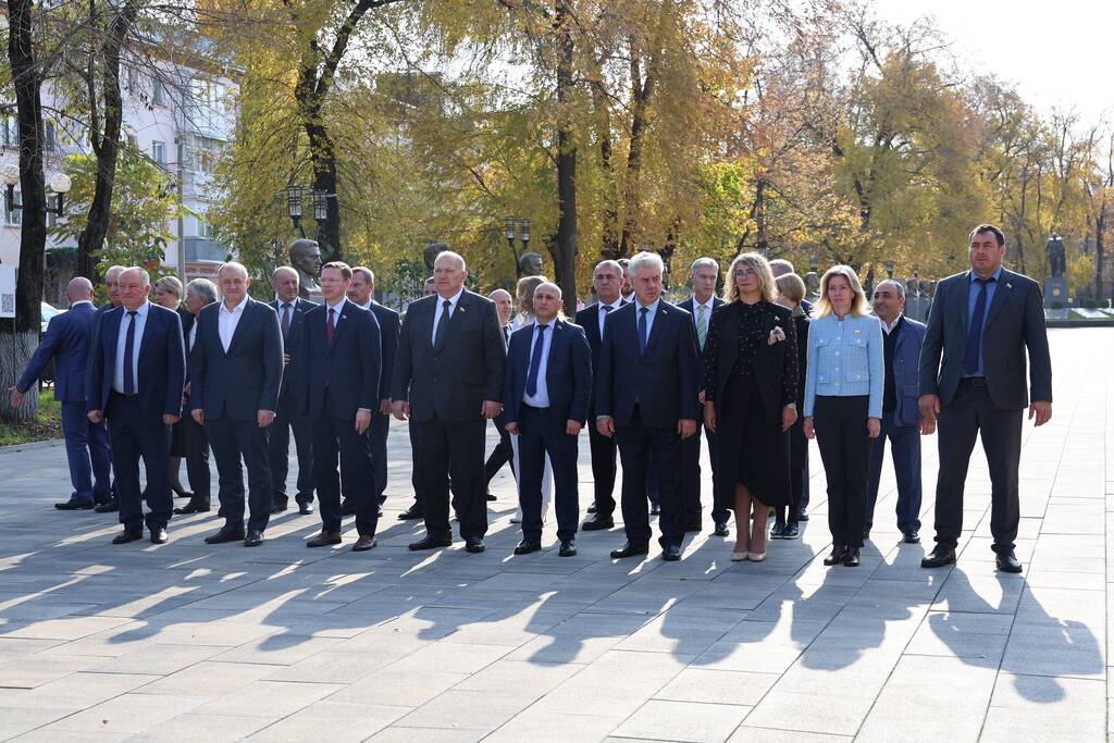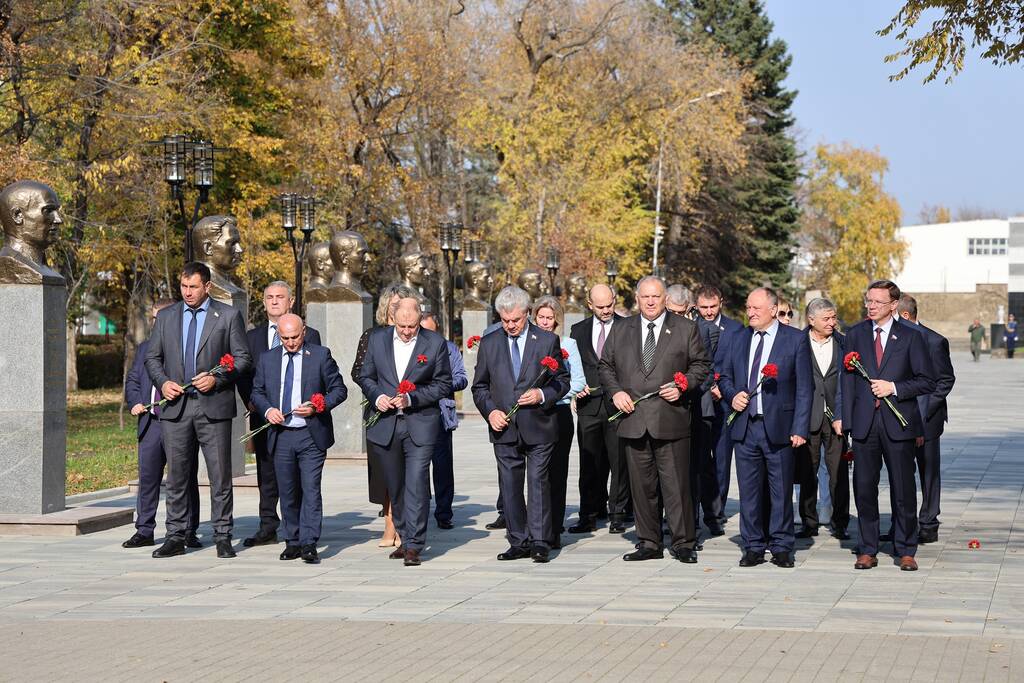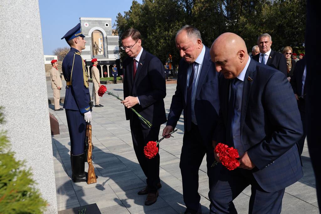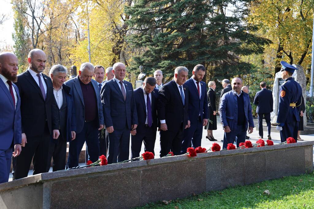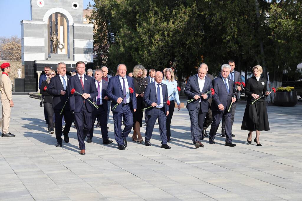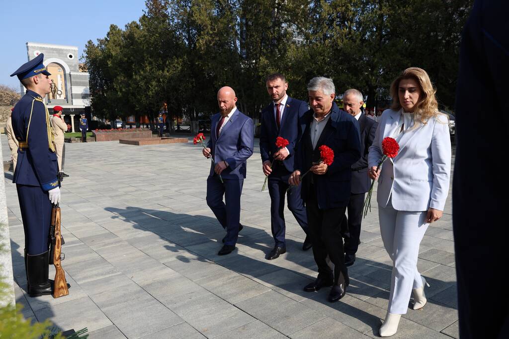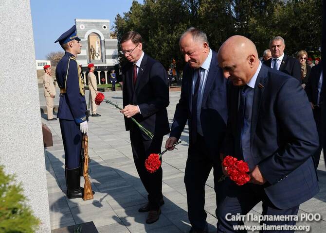 Члены Комиссии по сотрудничеству Парламента Республики Южная Осетия и Совета Федерации ФС Российской Федерации посетили Аллею Славы в Парке Победы г. Черкесска. Совместно с председателем Народного Собрания КЧР Александром Ивановым, первым заместителем председателя правительства КЧР Дагиром Смакуевым, депутатами Парламента КЧР, представителями городских властей почтили память Солдат Победы. Участники возложили цветы к основанию Мемориала «Огонь Вечной Славы», Мемориала погибшим воинам Карачаево-Черкесии, памятнику Героя России Канамата Боташева.