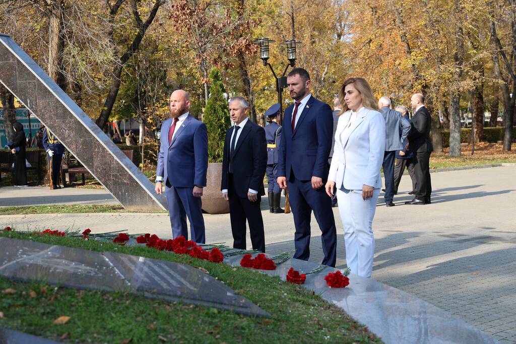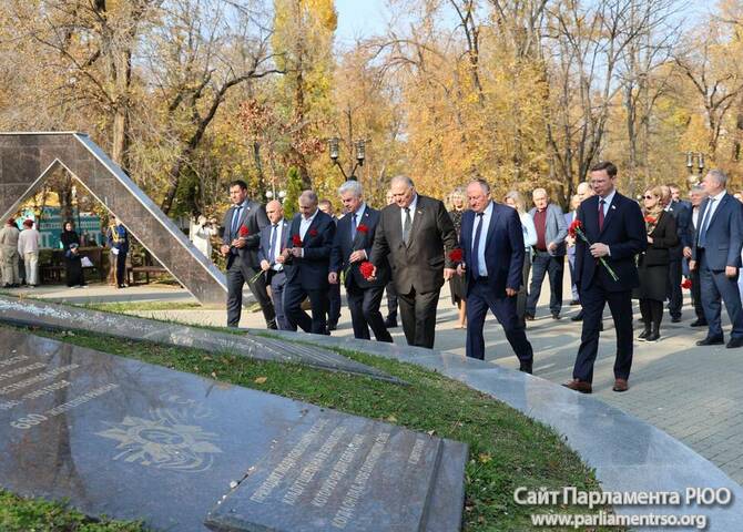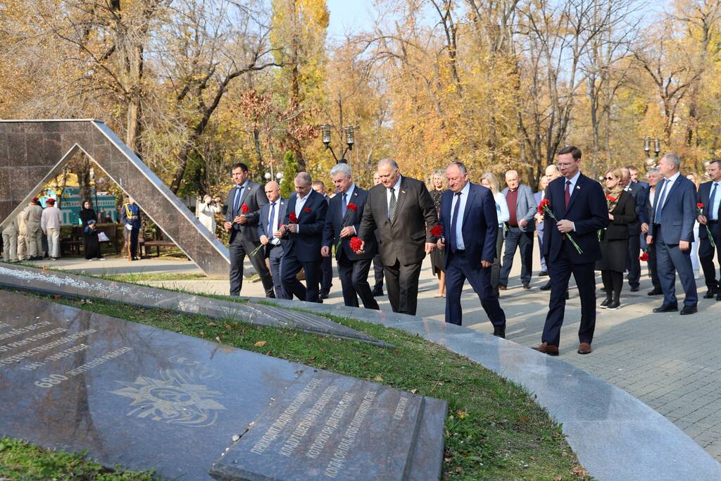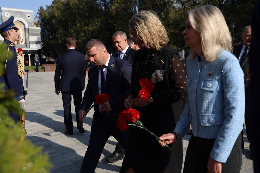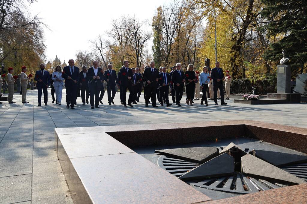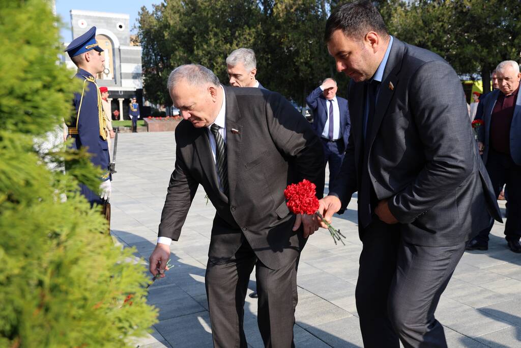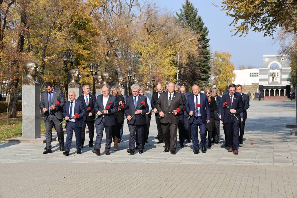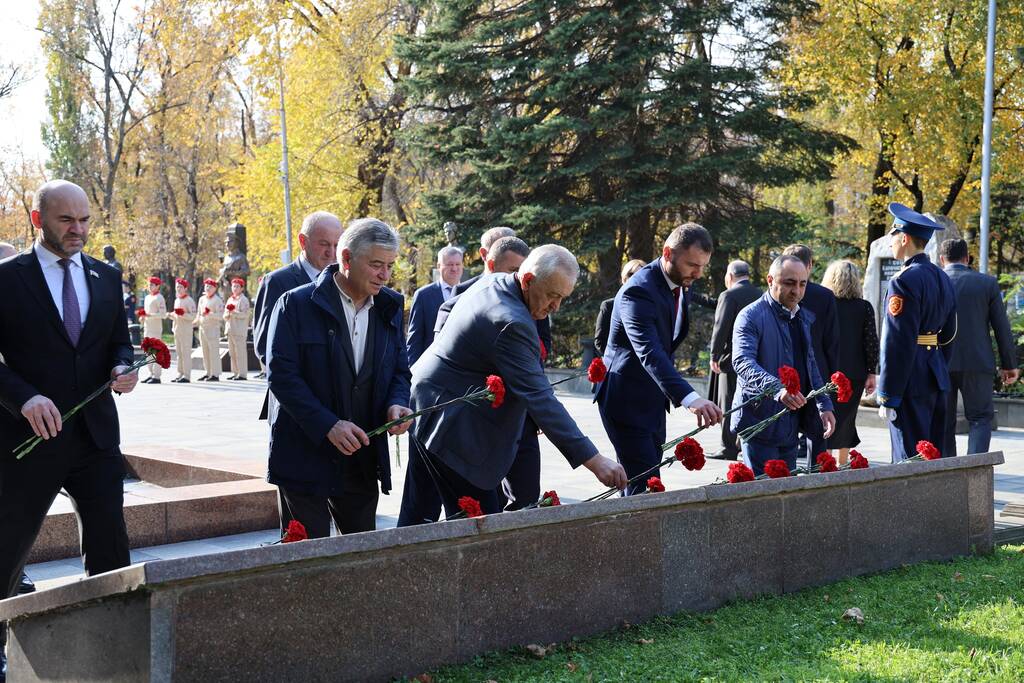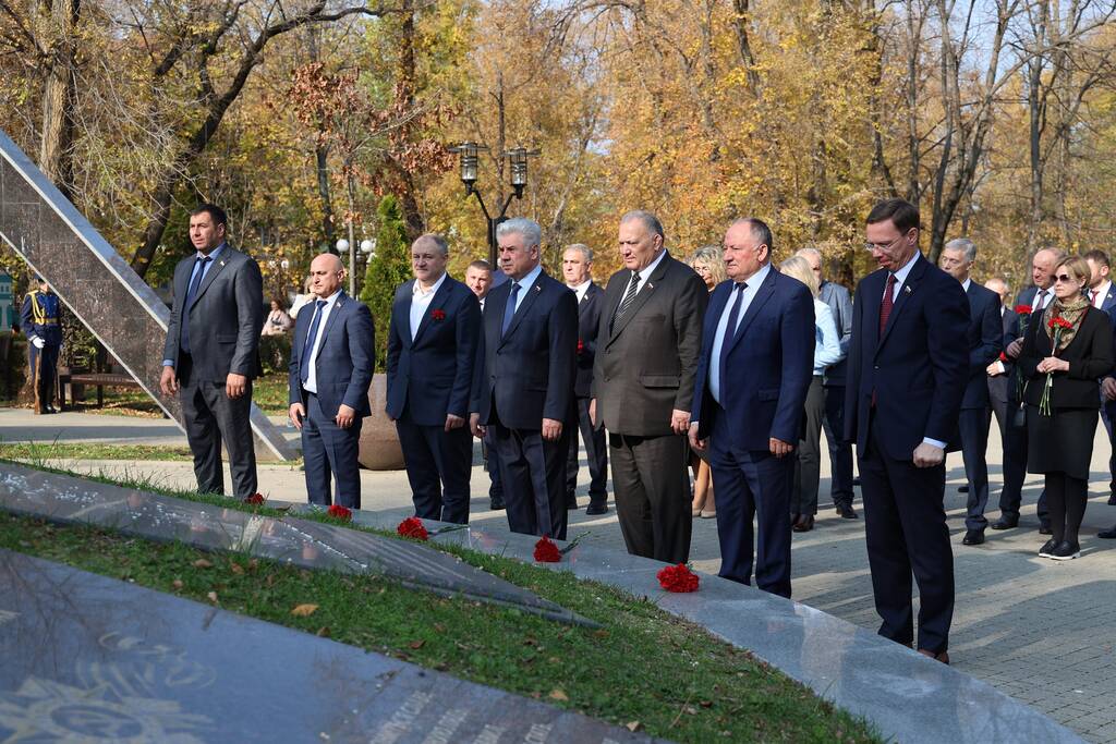 Члены Комиссии по сотрудничеству Парламента Республики Южная Осетия и Совета Федерации ФС Российской Федерации посетили Аллею Славы в Парке Победы г. Черкесска. Совместно с председателем Народного Собрания КЧР Александром Ивановым, первым заместителем председателя правительства КЧР Дагиром Смакуевым, депутатами Парламента КЧР, представителями городских властей почтили память Солдат Победы. Участники возложили цветы к основанию Мемориала «Огонь Вечной Славы», Мемориала погибшим воинам Карачаево-Черкесии, памятнику Героя России Канамата Боташева.