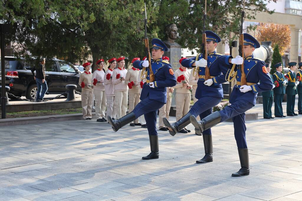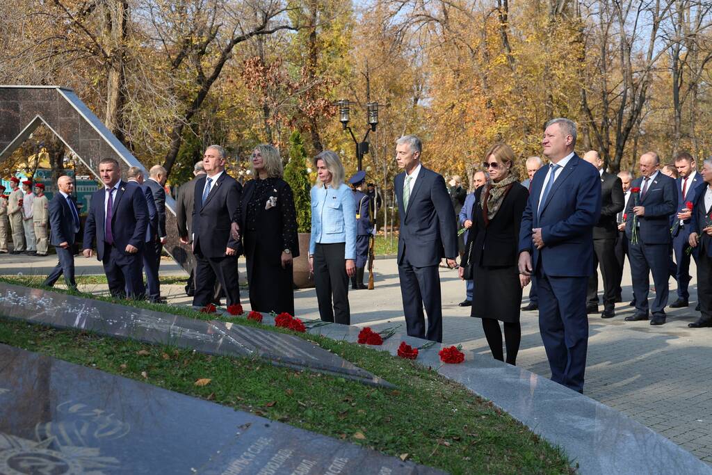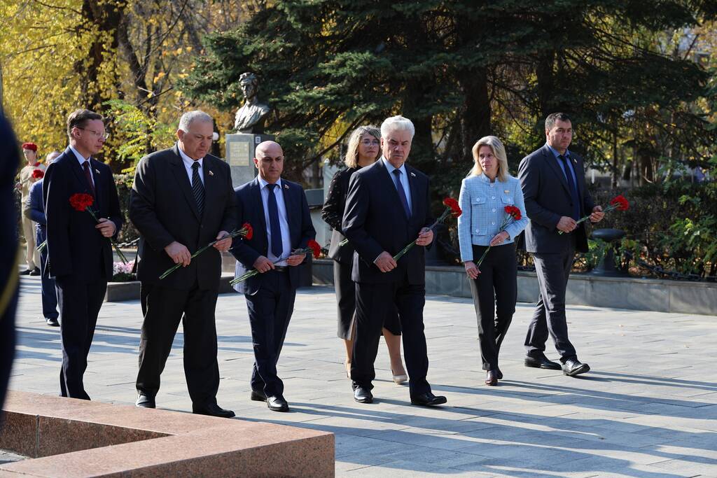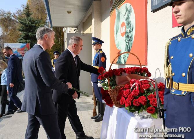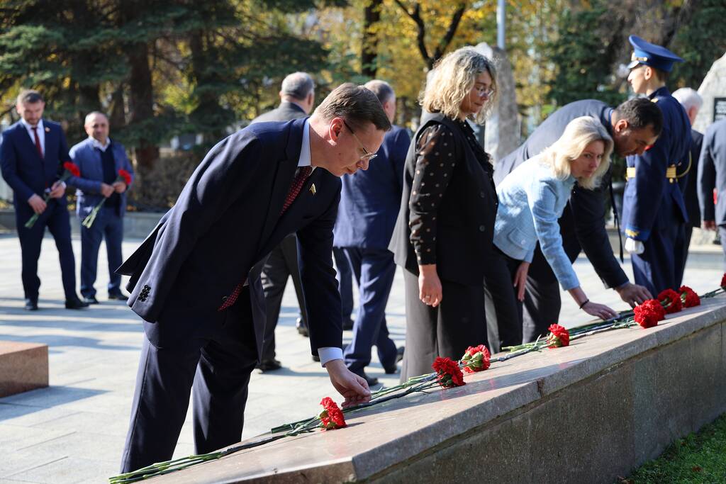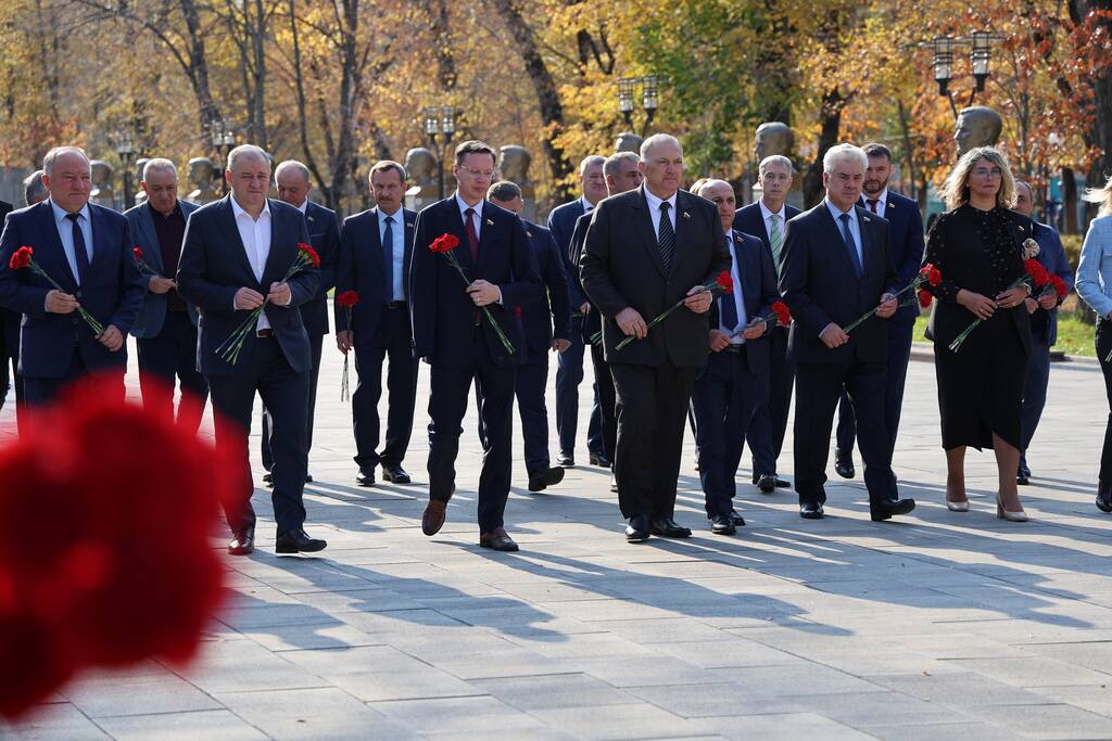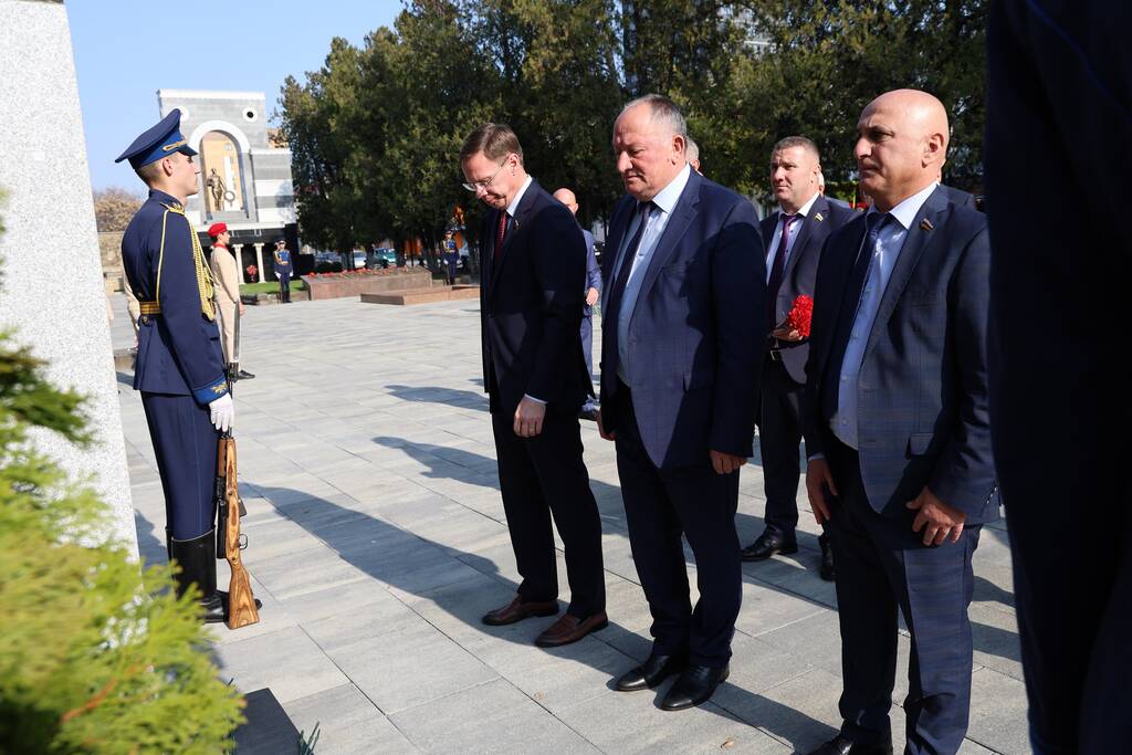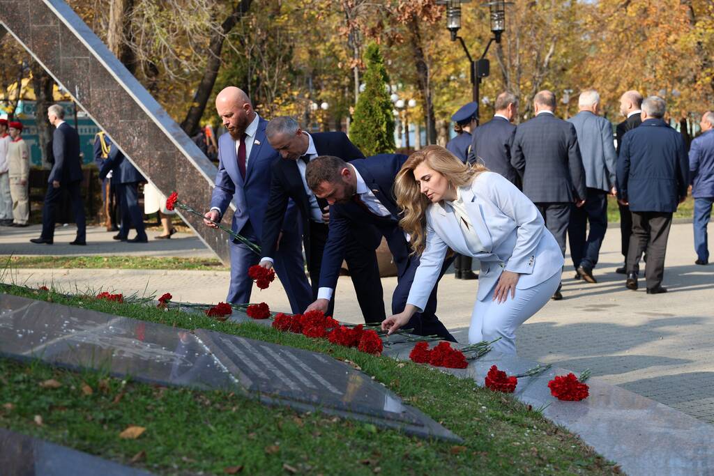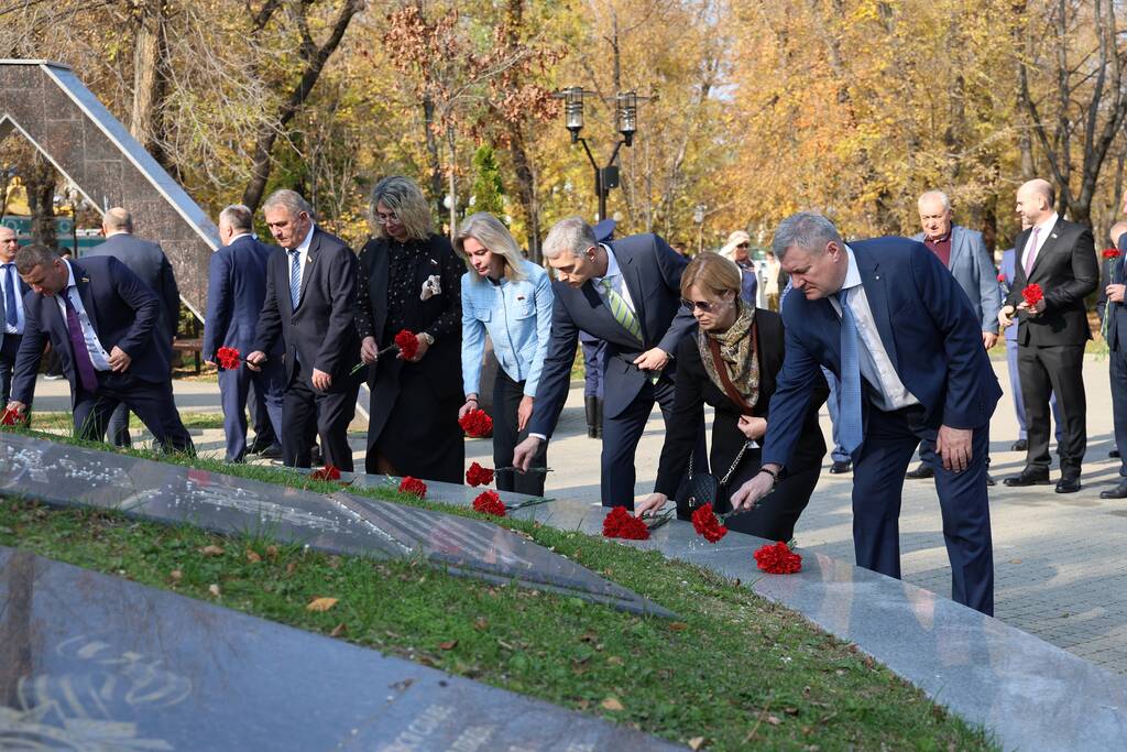 Члены Комиссии по сотрудничеству Парламента Республики Южная Осетия и Совета Федерации ФС Российской Федерации посетили Аллею Славы в Парке Победы г. Черкесска. Совместно с председателем Народного Собрания КЧР Александром Ивановым, первым заместителем председателя правительства КЧР Дагиром Смакуевым, депутатами Парламента КЧР, представителями городских властей почтили память Солдат Победы. Участники возложили цветы к основанию Мемориала «Огонь Вечной Славы», Мемориала погибшим воинам Карачаево-Черкесии, памятнику Героя России Канамата Боташева.
