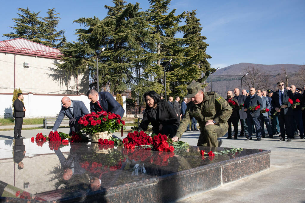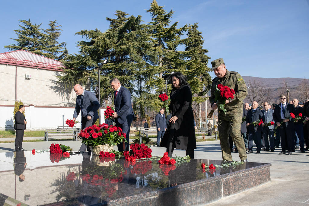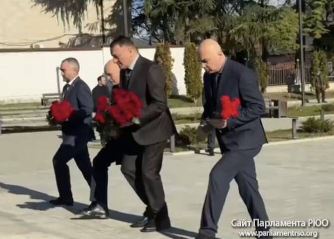 Депутаты парламента Южной Осетии во главе со спикером Аланом Маргиевым приняли участие в церемонии возложения цветов и венков к Мемориалу павшим защитникам Отечества