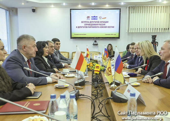 В Госдуме РФ в рамках международной конференции «Роль взаимодействия фракций политических партий и блоков в межпарламентском сотрудничестве стран СНГ» состоялась встреча депутатов Парламента Республики Южная Осетия с депутатами фракции Госдумы «Справедливая Россия».