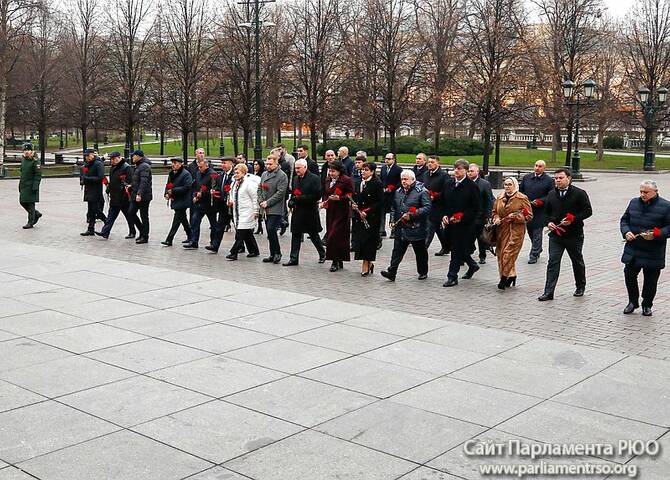 Кроме того, южноосетинская делегация совместно с делегациями парламентов стран СНГ возложила цветы к Могиле Неизвестного Солдата в Александровском саду Москвы.