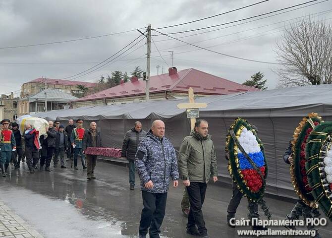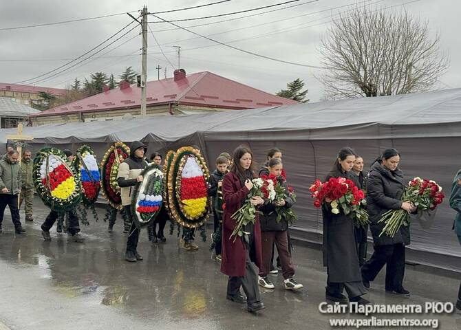 Проводить в последний путь бойца пришли руководство республики во главе с президентом Аланом Гаглоевым, депутаты парламента во главе со спикером Аланом Маргиевым, посол России в Южной Осетии Марат Кулахметов, боевые товарищи бойца и его родные и близкие.