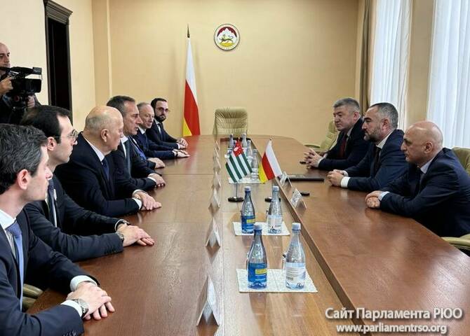 В парламенте Южной Осетии состоялась встреча председателя законодательного органа Алана Маргиева с делегацией МИД Абхазии, возглавляемой министром иностранных дел РА Олегом Барцием.