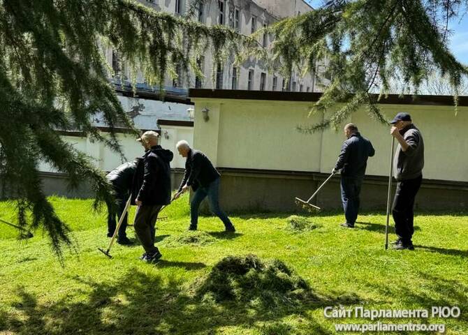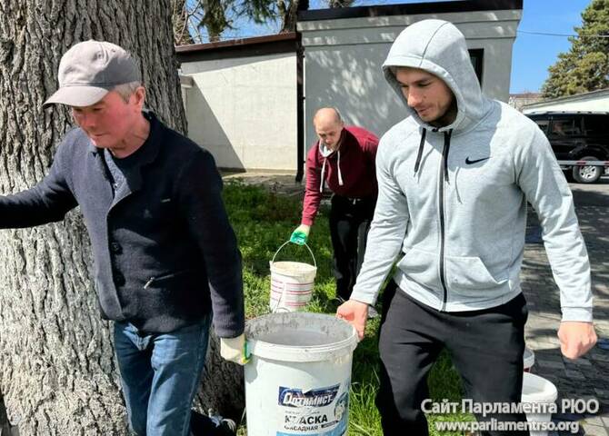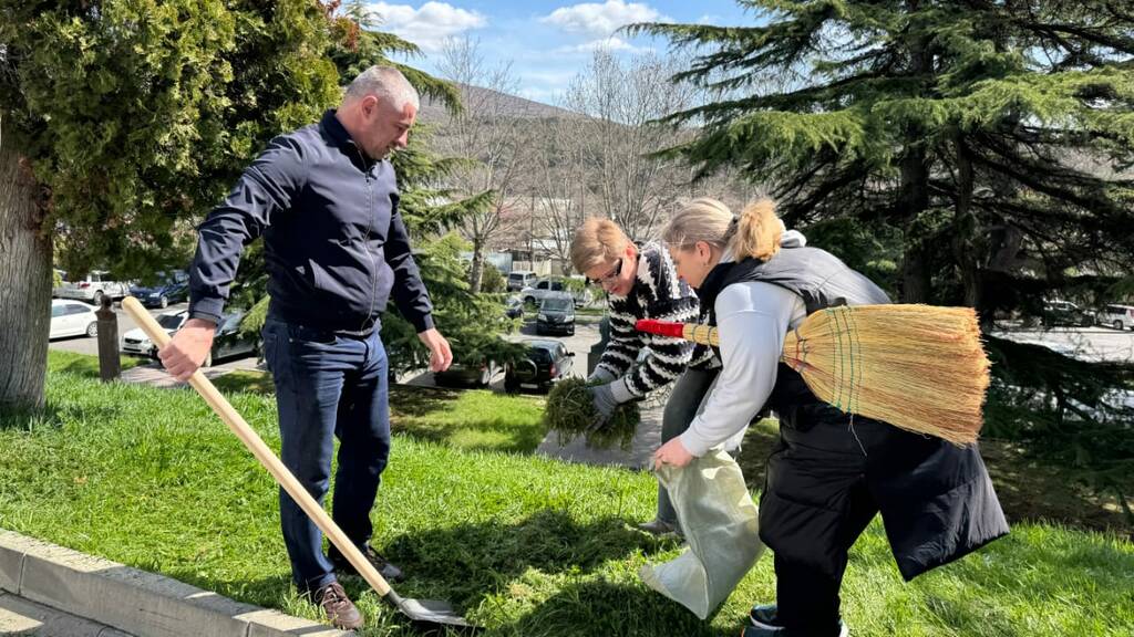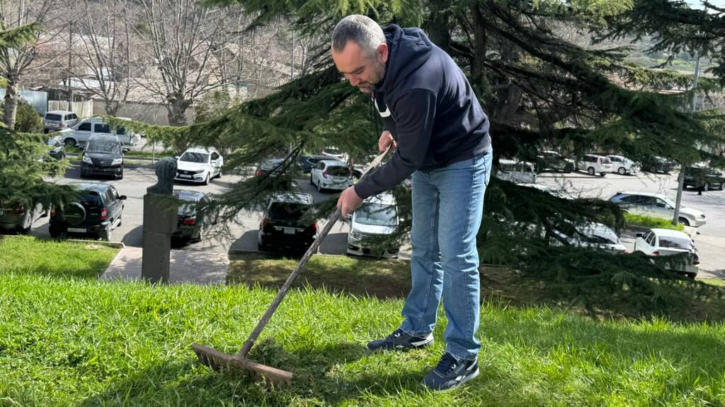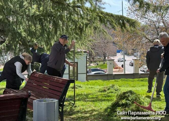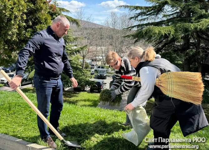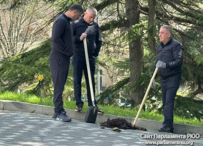 Депутаты и сотрудники парламента во главе со спикером Аланом Маргиевым приняли участие в общегосударственном субботнике